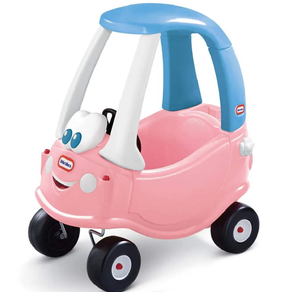 A pink version of the updated classic Cozy Coupe car, complete with all the previous features (working horn, opening door, opening petrol cap, rear storage and steering wheel) but this car also has a removable floor panel, door lock and a hand hole in the roof so you can push them along easier, though when they are a bit bigger or want to play independently you take the floor out and it’s the same car it always was just with a big smiley face on the front. Trailer not included but is available to buy separately. Age 18 months – 5 years