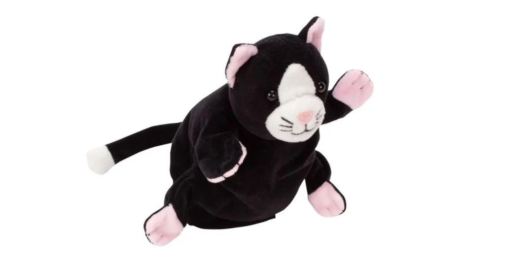 Beleduc puppets fit literally like a glove, there is a cuff to keep the puppet in place, then place each finger and thumb to control the puppet, making this Cat have four independently working legs as well as a moving head and neck. Its easy to make the puppet move and a medium adult or child’s hand will fit into the glove.