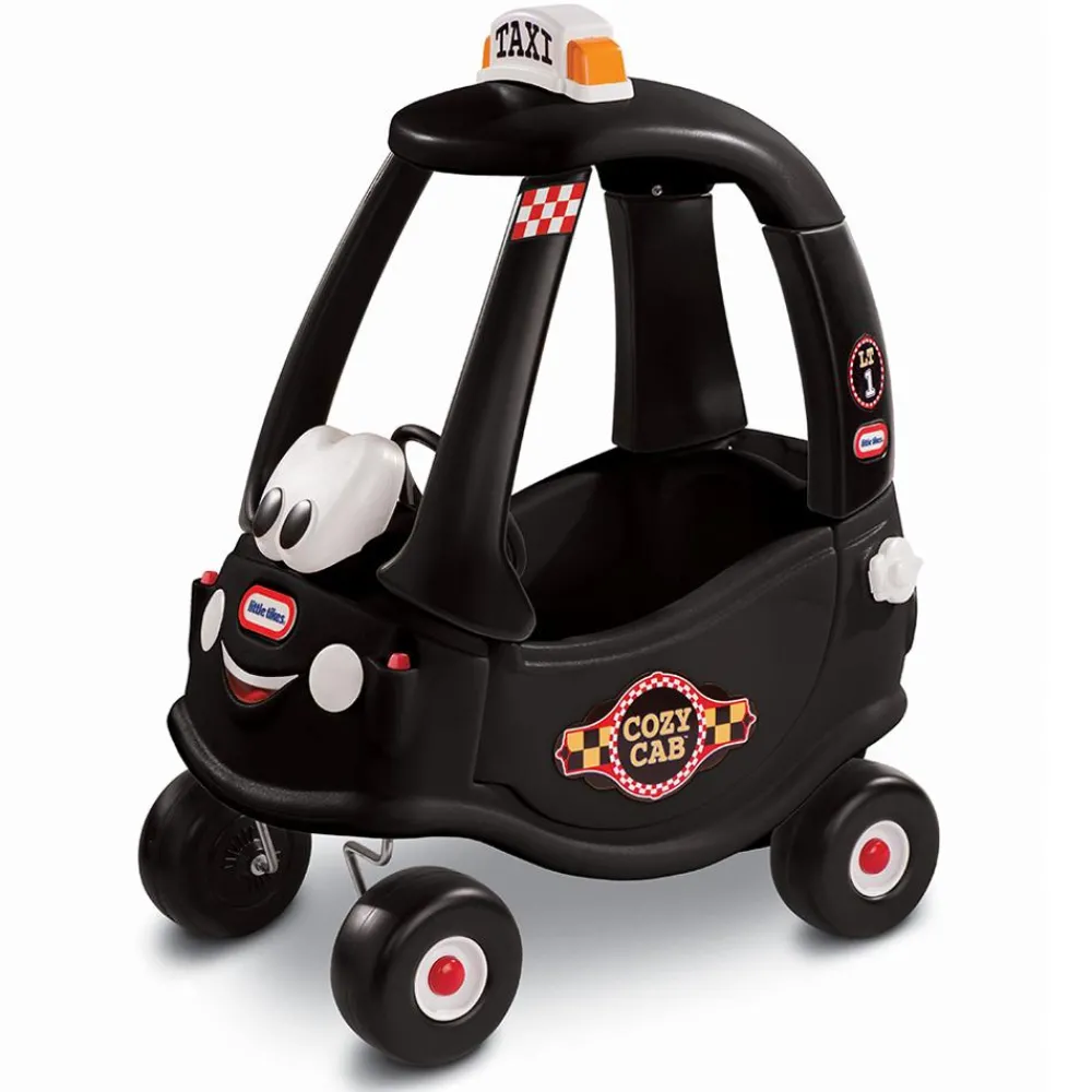 A black London Cab, this friendly little Cab (though some of us think it could be a baddies get away car) has a removable floor and handle at the back for parents to push. It has all the usual features of the Little Tikes cars – clicking key, large friendly eyes on the front, opening door, steering wheel and horn. Age 3+