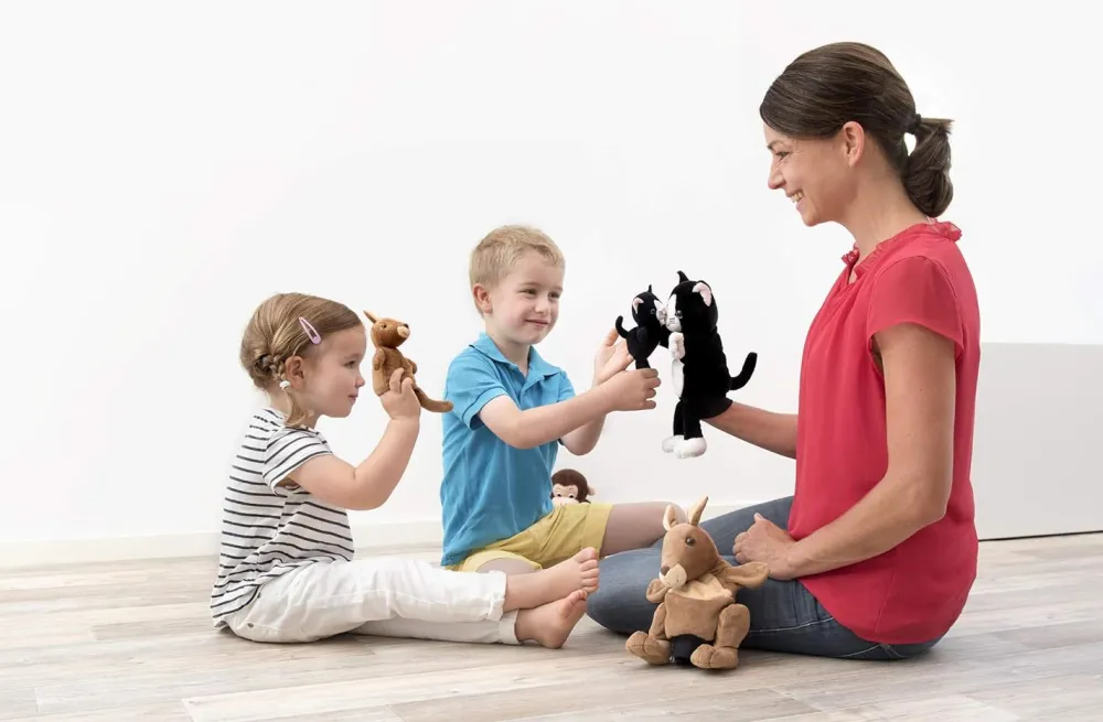The Mom and Baby can be played with together with one person or create games and stories with your children or children together can play with these puppets.