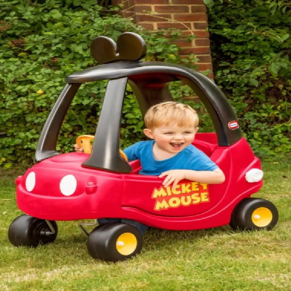 For generations, children have been taking adventure and imagination on the road with one of the original ride on toys – the Cozy Coupe. Now this classic child-powered car has a whole new character look.Little Tikes Mickey Mouse Cozy Coupe. Complete with traditional Mickey Mouse ears, working horn, and a storage area perfect for refreshments, your child will be ruling in style. Age 18 mths +