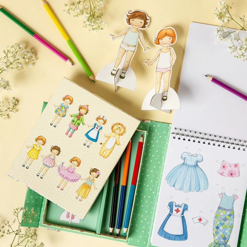 About the Tiger Tribe Paper Doll Dress Up and Draw Kit Vintage