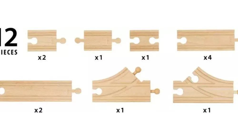 Add to your Starter Train Set to add another 5 different track layouts to your options or add these additional pieces to any set to give your trains more options as they move round your track.