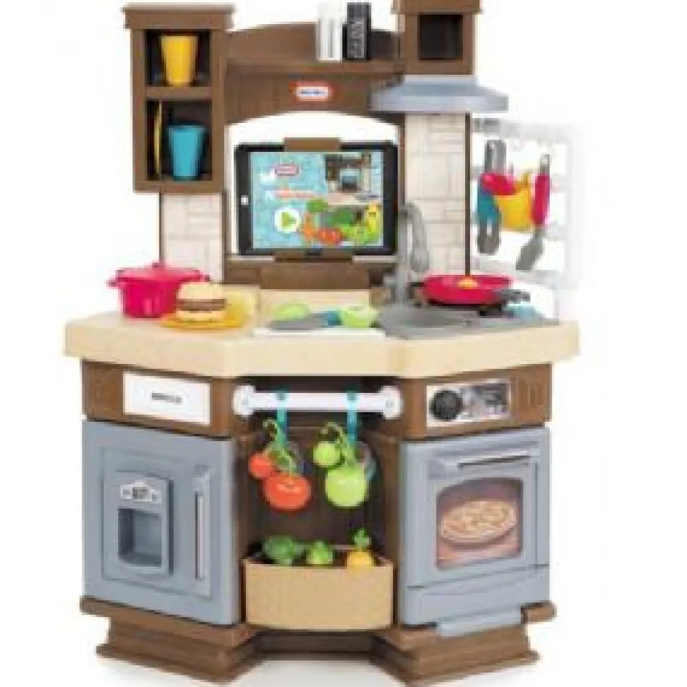 Let your children’s imaginations run free with the Cook ‘n Learn Smart Kitchen! This interactive play kitchen deepens play with responsive Bluetooth technology. Toddlers and Pre schoolers will love hearing the knife chopping, eggs sizzling, and water pouring just like in a real kitchen! Introduce a tablet and load the free Cook ‘n Learn app to take kitchen role-play to a new level of interactive play. With 4 modes of play with the App, there will be hours of fun and learning for your little master chef! Includes 40+ accessories including pans, plates, cups, silverware, cooking utensils, and play goods. Age 3 + Requires 4 x AA batteries (not included) Tablet not included.