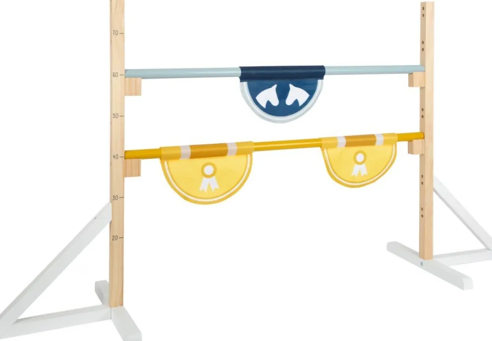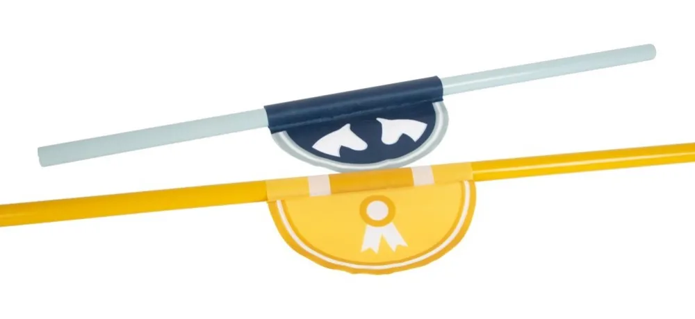 The height of your jump adjusts between 20 and 70cm, the side wings have heights marked on the uprights and pre drilled holes to slot the cups into. The jump poles will fall if knocked just like the real thing and material flags, slide onto your jump poles to create fillers in any pattern that suits you.