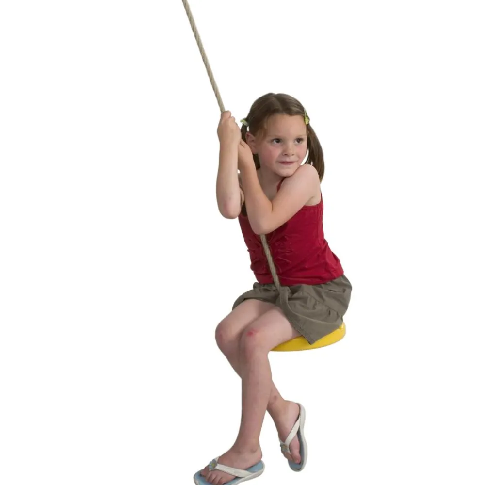 A traditional flower shaped button seat with a single swing attachment, let the little monkeys swing and balance on this seat attached with a galvanised steel ring to your swing frame or sturdy tree branch. With Poly Hemp rope, which is synthetic but feel like a soft natural rope.