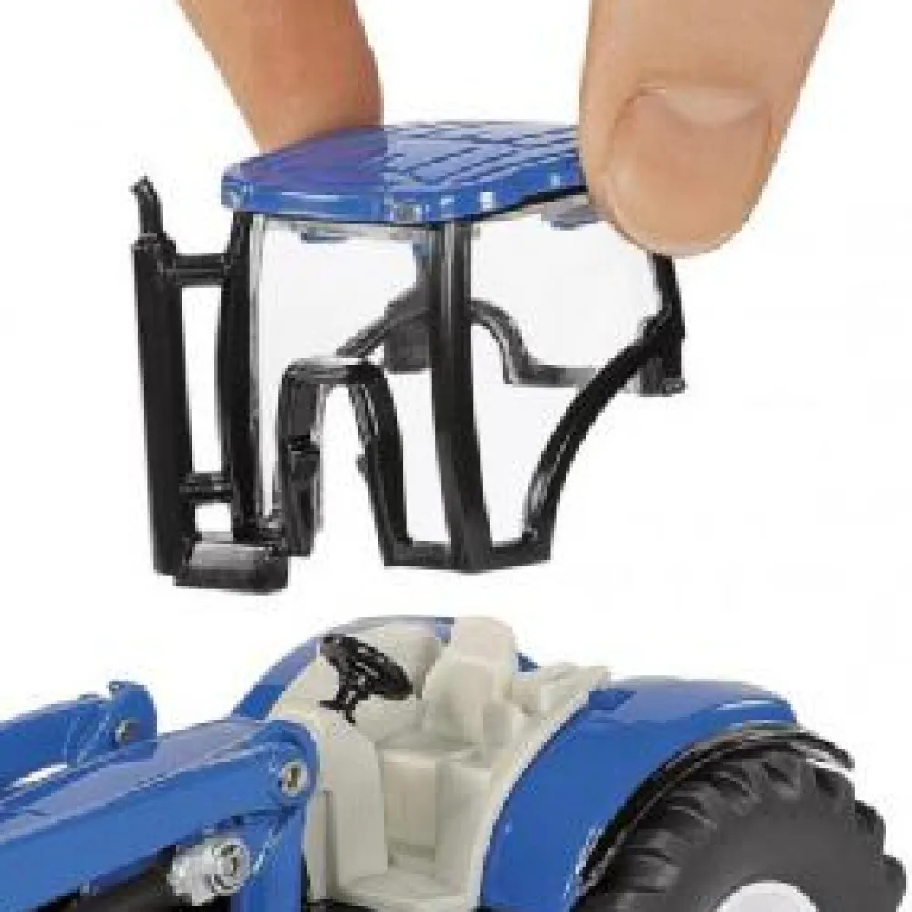 A New Holland T7070 Tractor with front loader which tilts and lifts. The tractor cab is removable and has a hitch on the back to connect to your fodder mixer. The mixer has a lifting front door, flipping front flap where the feed comes through and two turning augers to mix your feed. 1 : 50 scale