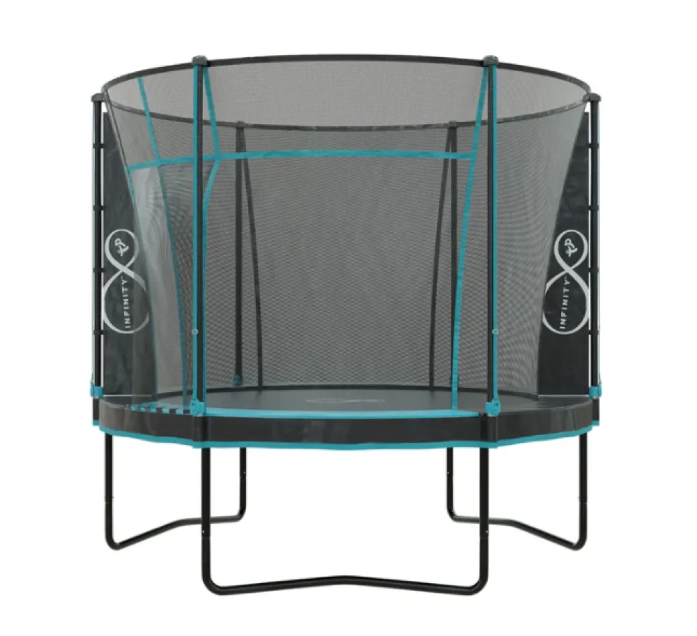 A great trampoline with a net which is very easy to drop down or raise. This strong trampoline has an igloo door passage for entry and exit, meaning no door zip in the net, which helps increase its life span. The extra long strong springs give a great bounce and the UV protected bounce mat also increases its life span. The 30mm pads which cover the whole of the springs, giving full protection along with the surround safe net. When you want to drop the net, unhook it from the net legs and fold the net legs down on top of the net, this takes an adult on their own less than a minute to do and the same to put back up.