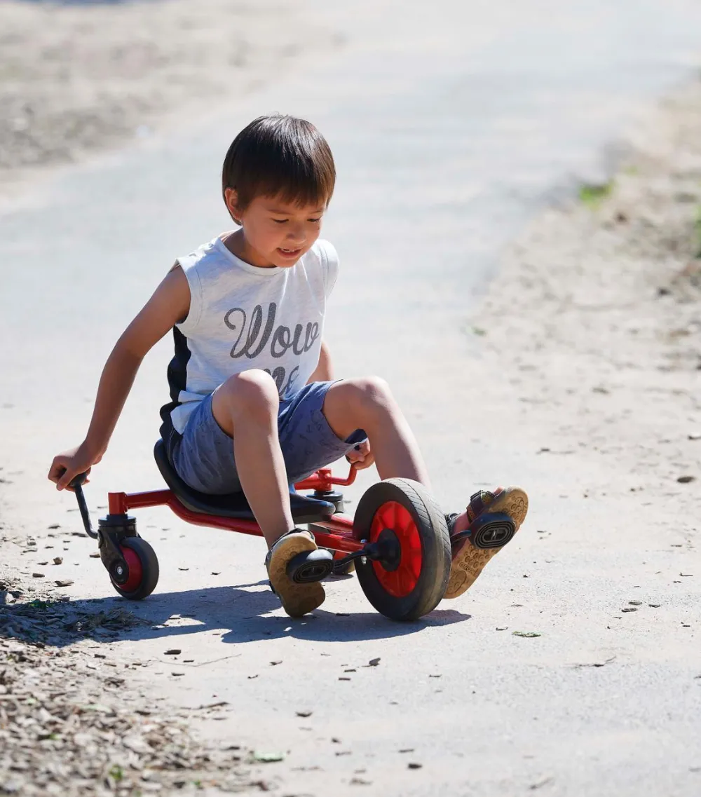A fantastic sturdy, strong pedal powered cart that has a unique steering system allowing very tight controlled turns. If you like speed and thrills this is the vehicle for you.