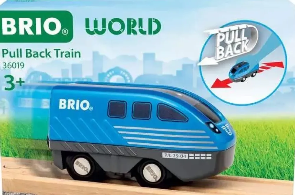 A mechanical train that never runs out of battery, this train has a pull back mechanism to power it. Pull it back and it travels along the track, it can even pull a carriage with the magnetic button all BRIO trains have.