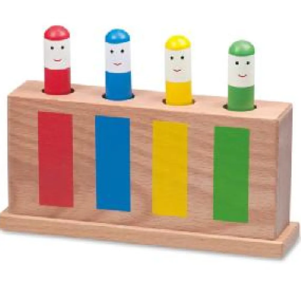 This Galt classic pop-up toy is made of wood and has four coloured push-up faces, each face is a different colour. The faces are easy to both pop up and push back down. Press the colourful characters and they will bob up and down, stimulating baby’s interest. Later, baby can progress to colour matching the characters to their slots. Ideal for the developing child, encouraging hand and eye co-ordination and colour recognition the Galt classic pop-up toy has wooden characters lift out and can be played with independently. It is crafted in quality wood for durability and lasting pleasure. Age 12 mths +
