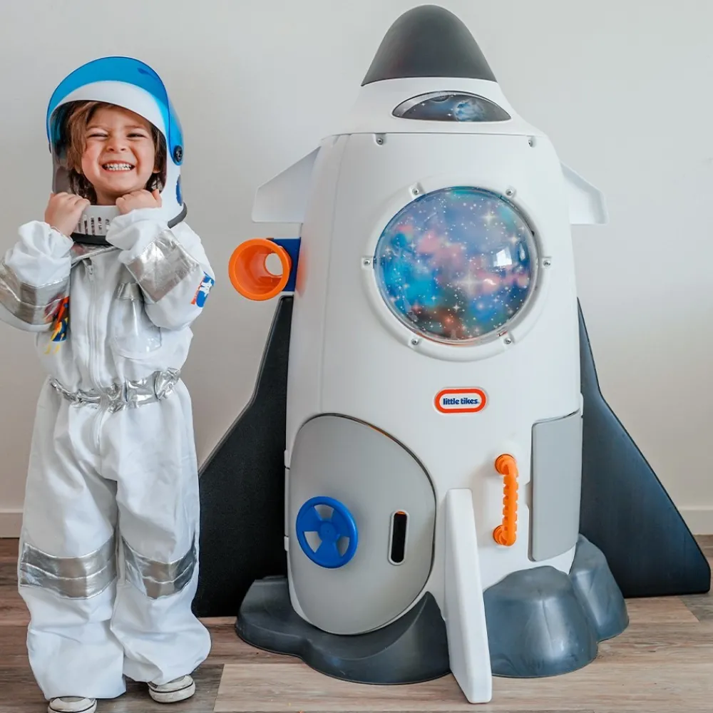 Take off and explore the galaxy’s, you can pilot this space ship, look through the telescope, repair the outside of the ship through the maintenance panel or crawl through the escape hatch to find the world you have landed in. Inside the ship has a swivel chair and star viewer screen allowing you to keep an eye on what you are flying through. With lights, sounds, levers and space linked accessories you can steer your space ship through out space and bring it home safely when you have made your discoveries.