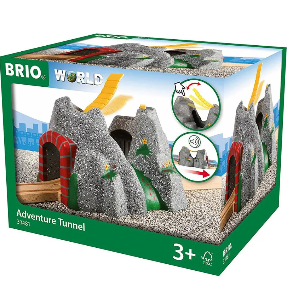 This tunnel will keep children excitedly playing for hours as it emits 4 different sounds as if by magic when a train passes through (it is actually activated magnetically by the train). The sounds, that include an owl hooting, are not in sequence and will stop after about 10 seconds. Pressing a button can also activate the sounds, if you have no trains passing at the time. The bridge on top of the mountain can be lifted to watch trains travelling through, or to help trains stuck in the tunnel! Requires 2 x AA batteries not included Age 3 years +