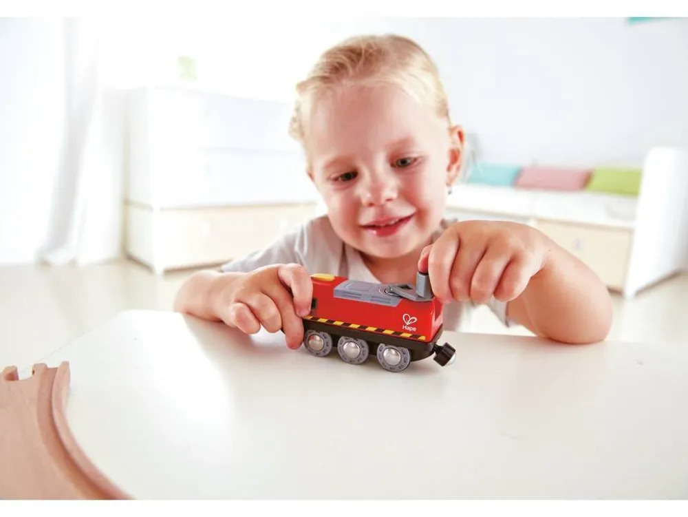 About the Hape Crank Powered Wind Up Battery Train Engine