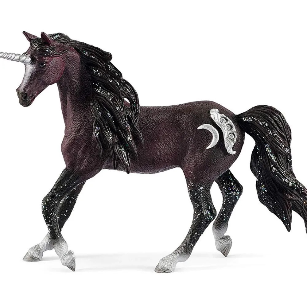 This proud stallion is a moon unicorn and, with his friendly, alert eyes, always keeps watch over his family, the star Pegasus mare and their shooting star unicorn foal. Even though he is just as shy and mysterious as other unicorns, you can still sense the power and temperament of a stallion who accepts his role as protector with body and soul.