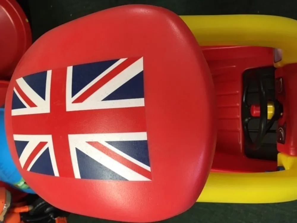 Turn your Little Tikes Cozy Coupe into a bespoke car, with this Union Jack printed roof.