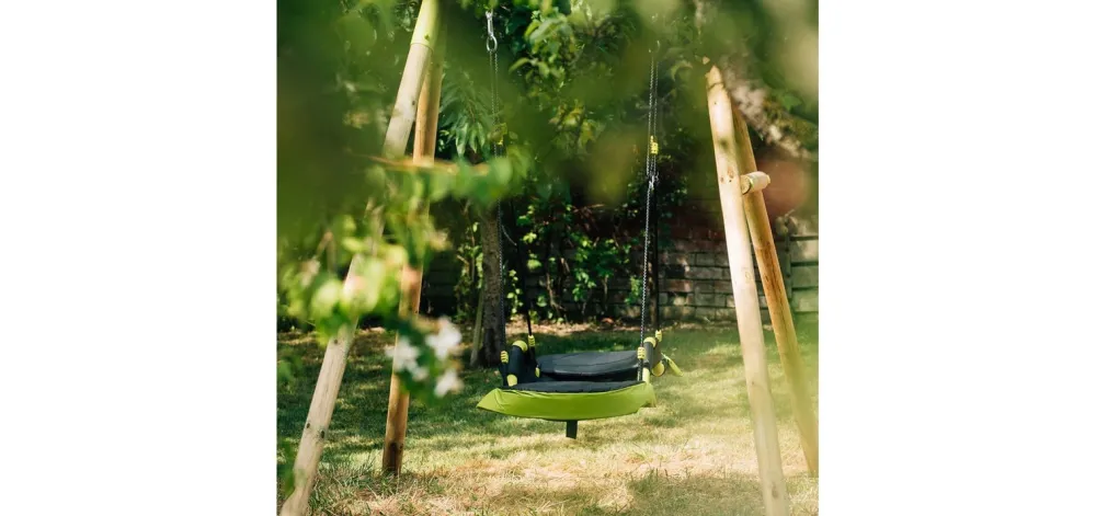 Use as a two seater nest swing or adjust it to be a reclined seat hammock with head rest. With a padded frame and removable seat cushions at both ends of the glider you can relax and enjoy gentle movements watching the clouds or reading or adjust it to its flat setting allowing children to have fun together, swinging high.