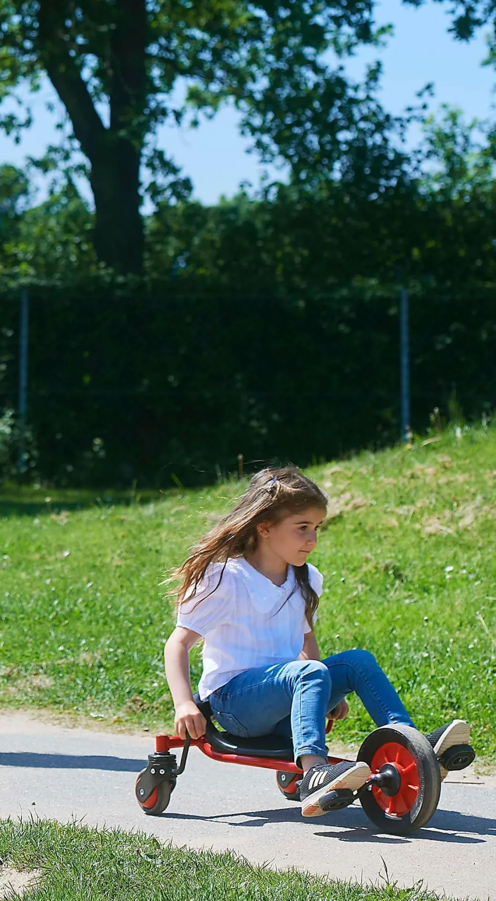 A fantastic sturdy, strong pedal powered cart that has a unique steering system allowing very tight controlled turns. If you like speed and thrills this is the vehicle for you.
