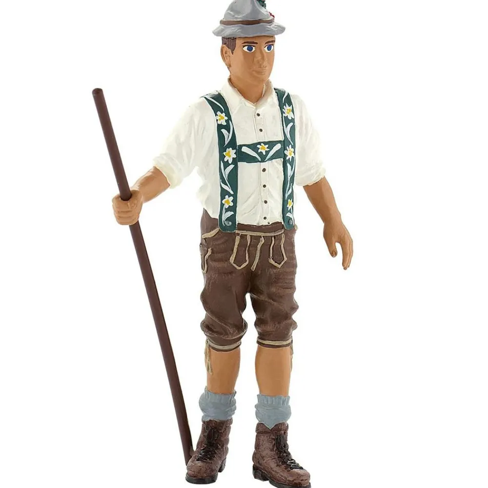 A traditionally dressed Swiss mountain Shepherd, ready to head out onto the hills to check his animals. All Bullyland figures are hand painted so all are a little bit different.