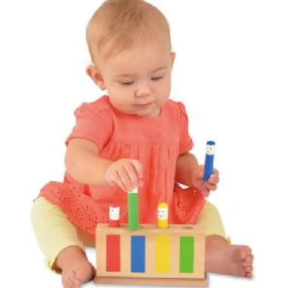 This Galt classic pop-up toy is made of wood and has four coloured push-up faces, each face is a different colour. The faces are easy to both pop up and push back down. Press the colourful characters and they will bob up and down, stimulating baby’s interest. Later, baby can progress to colour matching the characters to their slots. Ideal for the developing child, encouraging hand and eye co-ordination and colour recognition the Galt classic pop-up toy has wooden characters lift out and can be played with independently. It is crafted in quality wood for durability and lasting pleasure. Age 12 mths +