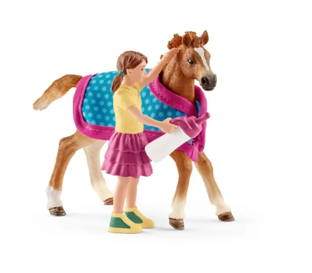 About the Schleich Foal with Blanket and Girl Boxed 42361