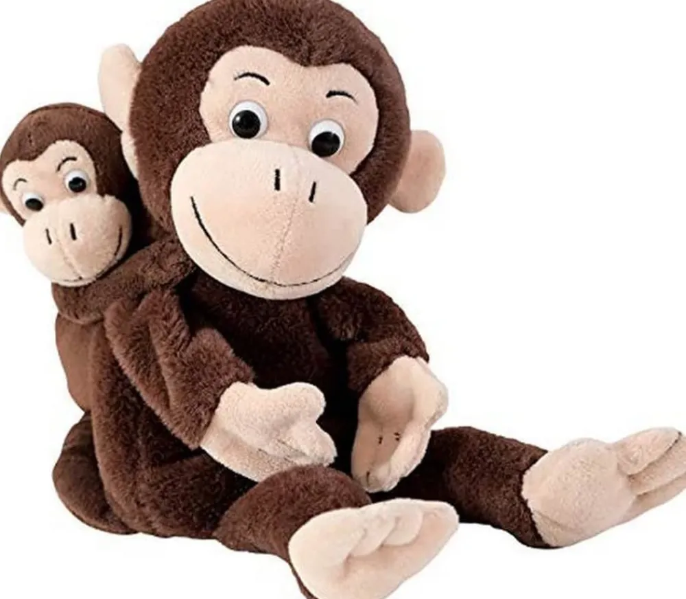 With a friendly face, soft body and long arms this Mom monkey is ready to join in your games, hanging round her neck is in her little baby, this finger puppet baby monkey has Velcro to hold round his mums neck for a carry and it can even do hand stands on her back, if you Velcro upside down or it can be played with separately.