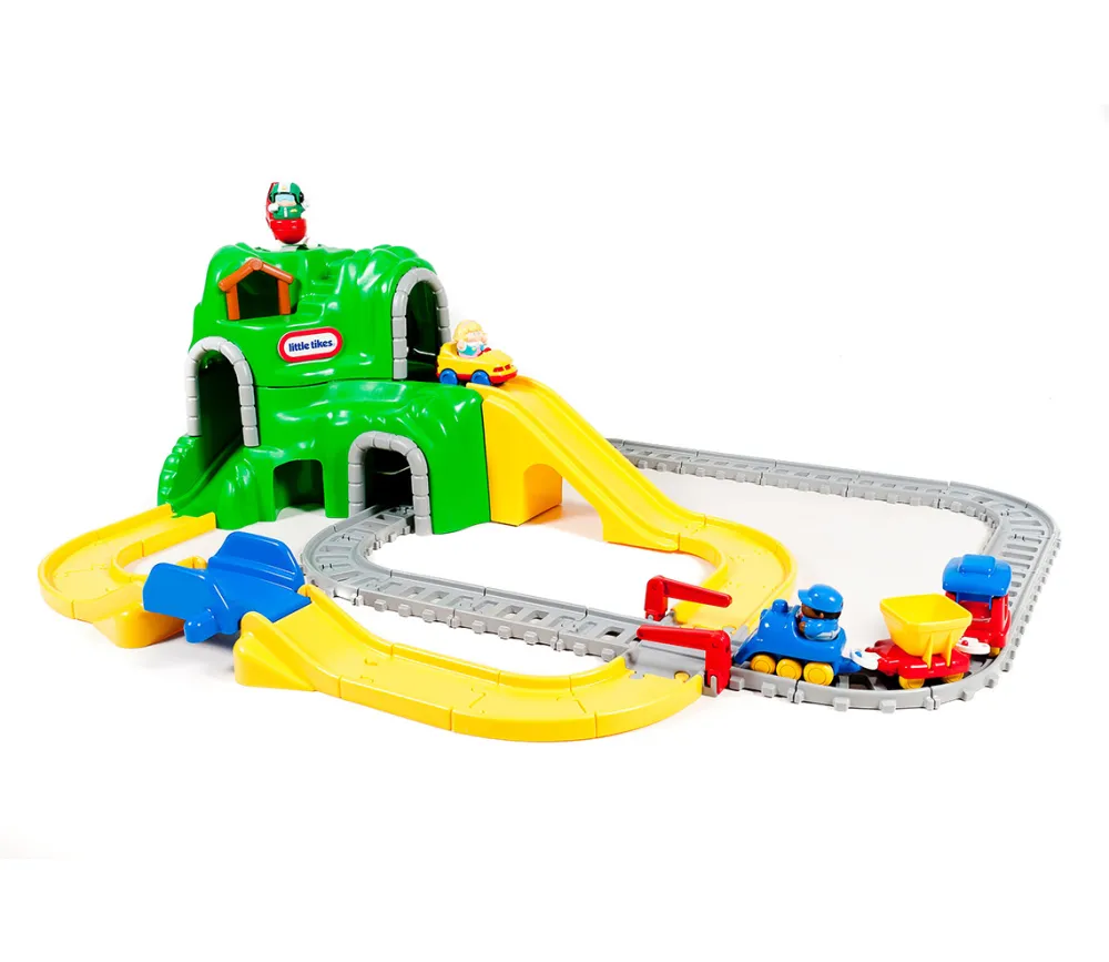 This 44 piece play set includes a large mountain with tunnels, road system, railway, helicopter landing pad, caves, secret slides, 5 vehicles and 3 friends. Age 18 months – 5 Years