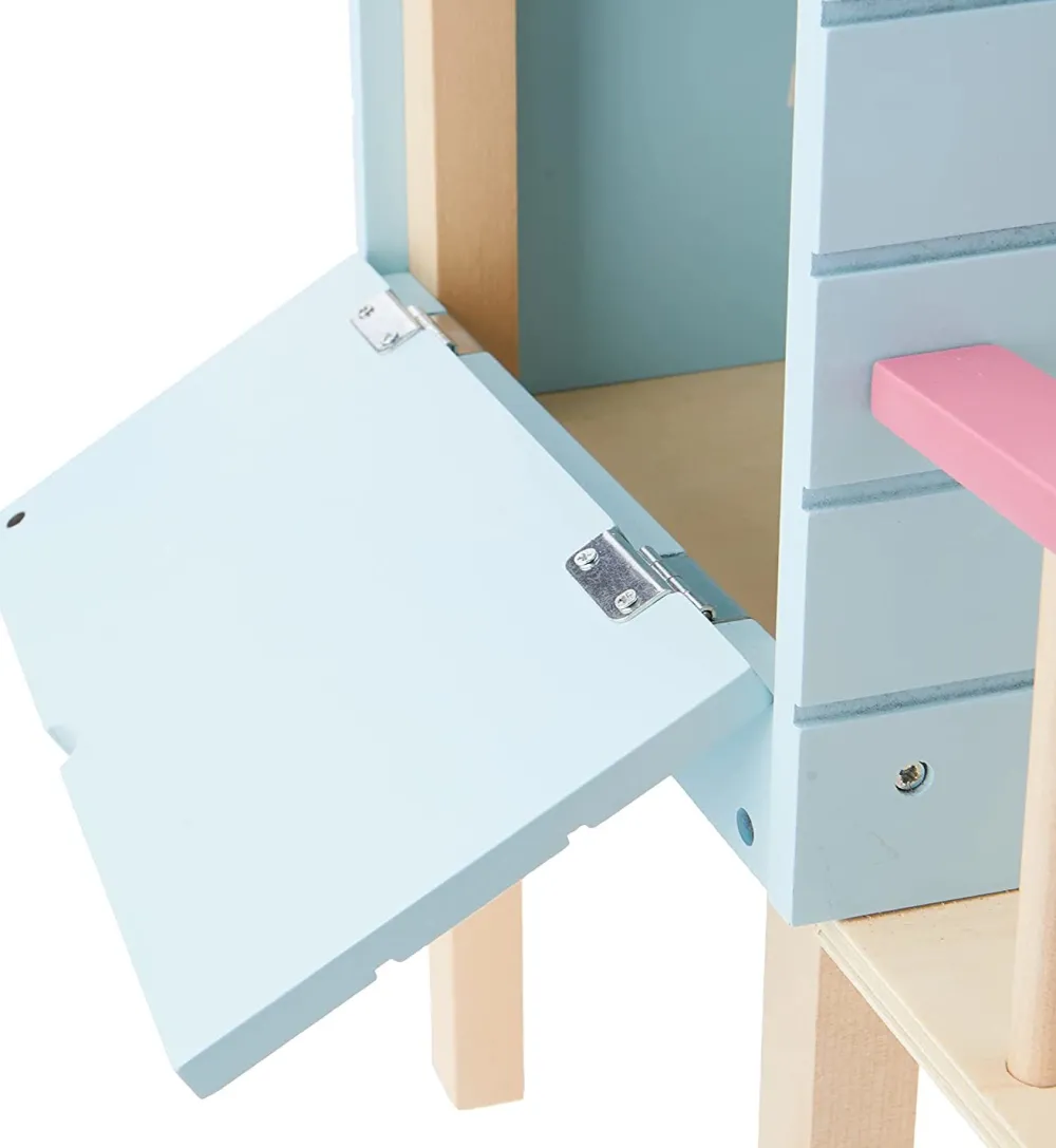 The opening door and side panel allows you and your doll lots of access to inside, or climb up the rope ladder to get to the balcony and then slide down the long slide.